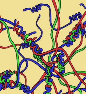disponen tres moléculas de gelatina en forma de triple hélice.