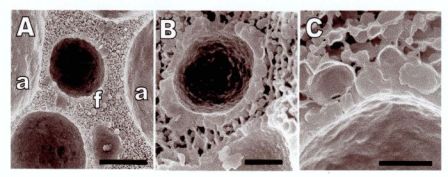 de burbujas de aire (a) y glóbulos de grasa (f) Barra de escala =