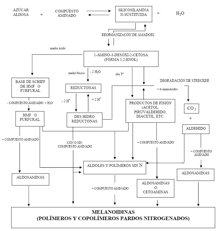 reacciones ya que se parte de muchos azúcares y aminoácidos diferentes que pueden reaccionar